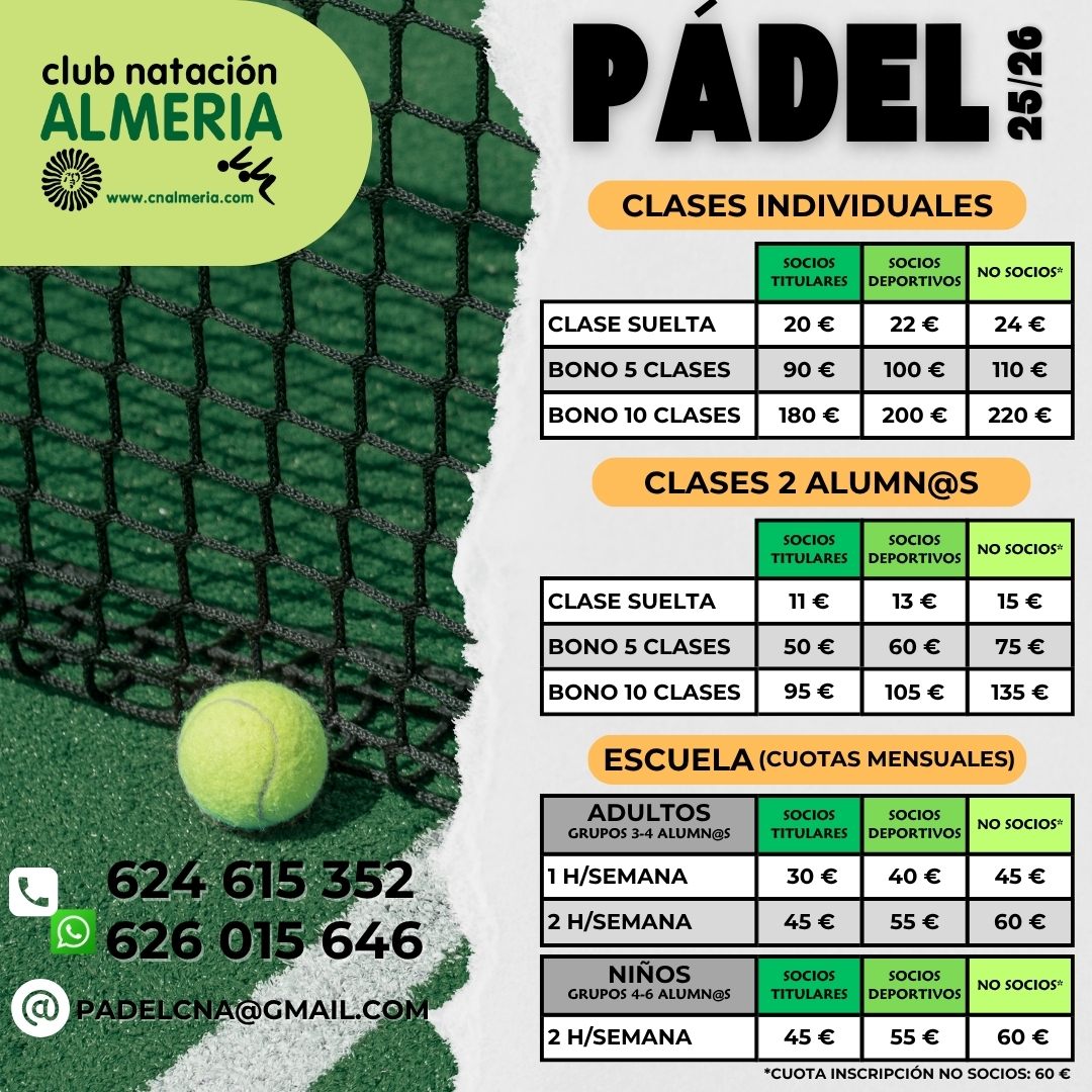 En nuestra Sección de Pádel del Club abarcamos todas las edades y niveles de juego, donde todos los aficionados a este deporte de raqueta pueden participar tanto de la escuela como de las distintas actividades que vamos realizando cada temporada. Tenemos una de las escuelas más grandes de la provincia, integrada por más de cien alumnos que evolucionan día a día. Dentro de ella, tenemos nuestro grupo competición de menores, quienes además de jugar los campeonatos locales, también viajan para competir en el circuito andaluz de pádel, llevando así el nombre de nuestro club por toda Andalucía. Estamos orgullosos de ellos, por la forma y el nivel con que lo hacen.