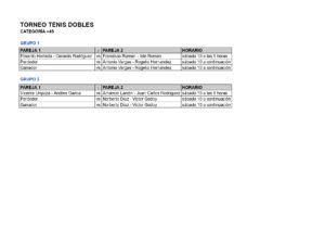HORARIOS TORNEO TENIS DOBLES (10 ENERO 2026) Ruben2026-01-09T13:03:21+01:00 ¡Comparte esta noticia en tus redes sociales! ¡Gracias! FacebookXLinkedInWhatsAppPinterestCorreo electrónico Artículos relacionados CUADROS Y HORARIOS XX OPEN DE TENIS CNA 27 octubre, 2025 INSCRIPCIÓN RANKING Y LIGA DE TENIS 4 agosto, 2025 CUADROS Y HORARIOS XX OPEN DE TENIS «LA CARIBEÑA» 12 junio, 2025